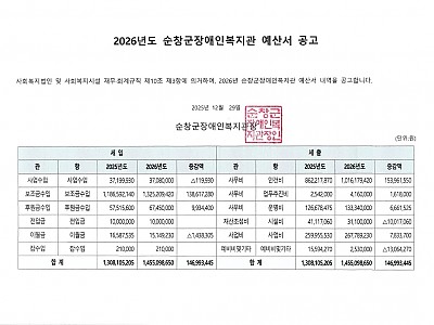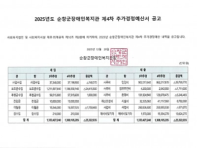 2025년도 순창군장애인복지관 제4차 추가경정예산서 공고