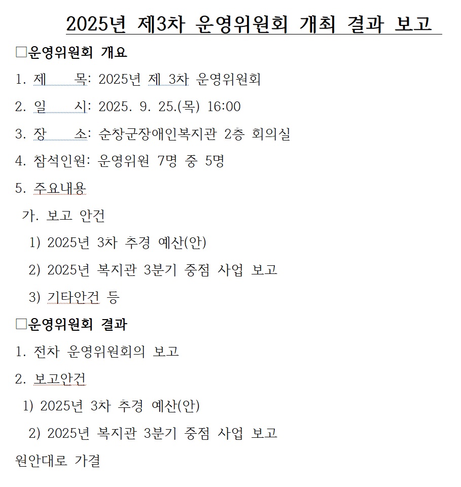 2025년도 순창군장애인복지관 제3차 추가경정예산서 공고