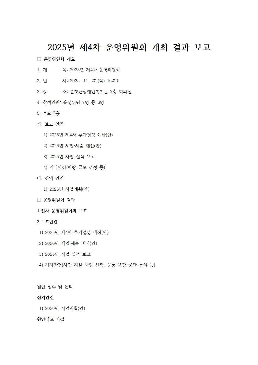 2025년 4차 운영위원회 결과를 다음과 같이 안내합니다.